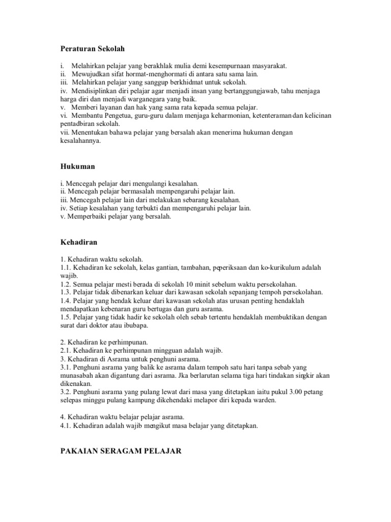 Peraturan Sekolah Peraturan Berpakaian Smk Taun Gusi Ii Kota Belud